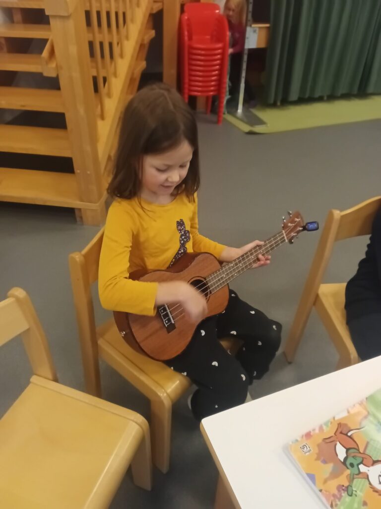 Unsere Anna hat seit einiger Zeit regelmäßig Ukulele Unterricht und nimmt uns in ihrem Lernerfolg mit. Die Kinder haben großen Spaß, wenn Anna damit Lieder begleitet oder wenn sie selber ausprobieren dürfen.