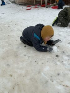 Dieses Jahr hatten wir endlich einmal einen richtigen Winter wie Kinder sich das wünschen. Wir waren fast täglich Schlittenfahren und die Kinder haben fleißig gebaut. Es wuchsen Burgen und Schneemänner und auch Experimente konnten in vielen Variationen stattfinden.