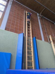Einmal in der Woche (aktuell montags) dürfen wir in die Große Turnhalle am Sportplatz. Gerade die „Großen“ genießen das sehr. Die Turnmöglichkeiten sind dort einfach noch vielseitiger. Wir können dort die Seile, Ringe, das Reck und vieles mehr nutzen. Durch diese Erfahrungen werden die Kinder nicht nur in der motorischen Entwicklung unterstützt. Der Weg dorthin, bietet uns wöchentlich die Möglichkeit die Verkehrserziehung mit einzubinden, Naturbeobachtungen zu machen und vieles mehr.