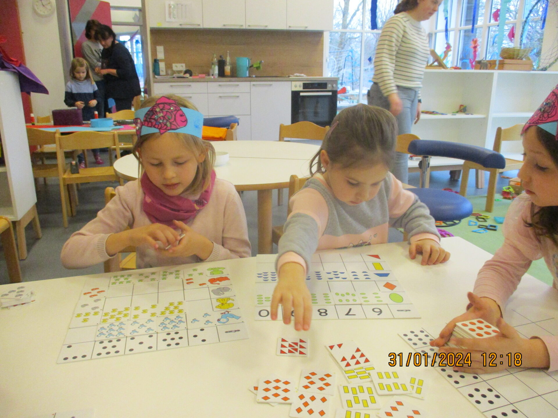 Auch zur Festlegung des diesjährigen Faschingsthemas wurde eine Kinderkonferenz einberufen (siehe Bilder). Dabei wurden verschiedene Themenvorschläge gesammelt und von den Kindern verbildlicht. Jedes Mitglied der Gemeinschaft, legt daraufhin seine Stimme in Form eines Muggelsteins, zum bevorzugten Faschingsthema, nieder. Nach der gemeinsamen Auszählung der Stimmen, stand unser Faschingsthema fest, und wurde in vielfältiger Weise, durch Dekoration, Lieder und Kostüme umgesetzt.